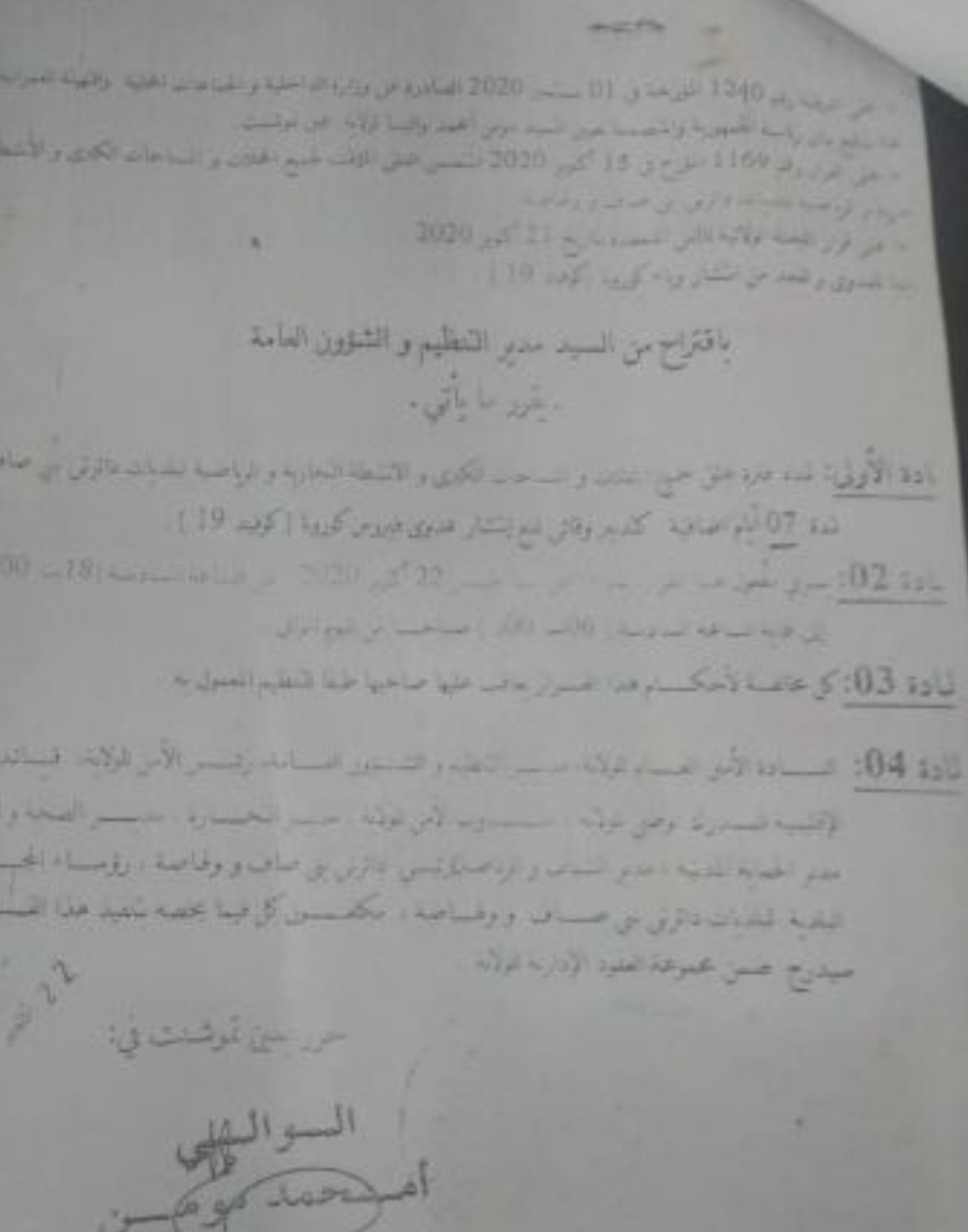 قرر والي ولاية عين تموشنت امحمد مومن تمديد فترة غلق جميع المحلات التجارية والمساحات الكبرى بدائرتي ولهاصة وبني صاف.و يضم القرار كذلك توقيف الأنشطة التجارية والرياضية لمدة 7 أيام إضافية بولاية عين تموشنت.وتسري فترة الغلق من الساعة السادسة مساءا الى السادسة صباحا.