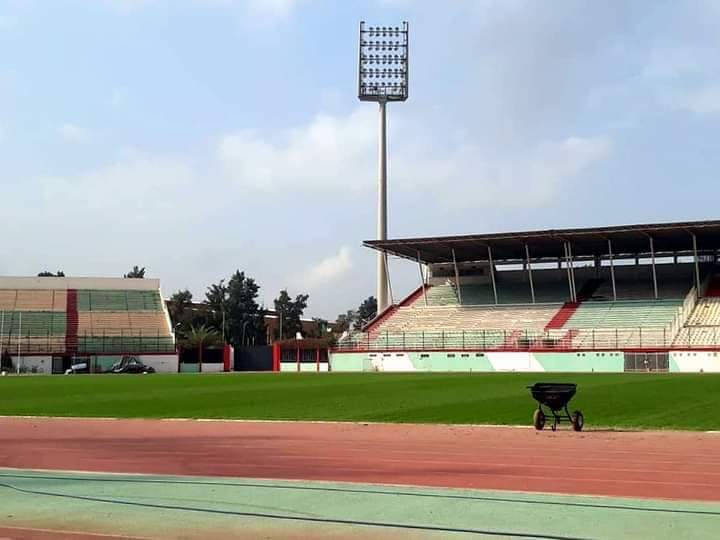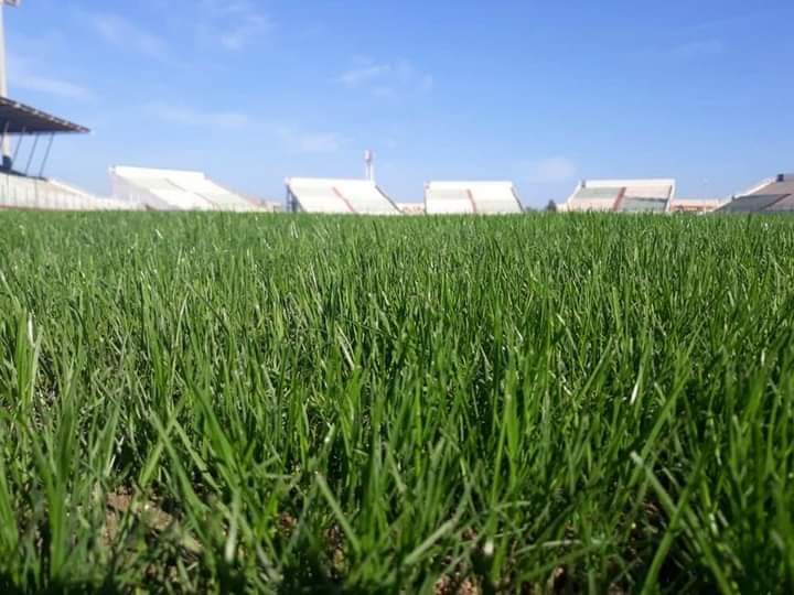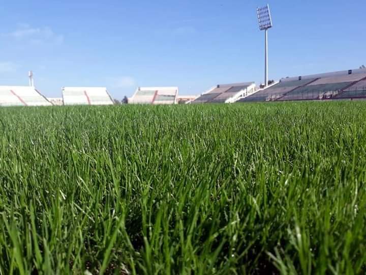 الأرضية بحلتها الجديدة و التي أعيد تهيأتها مؤخرا و هي على وشك إنتهاء الأشغال بها من أجل إستقبال المواعيد الرياضية مستقبلا.
