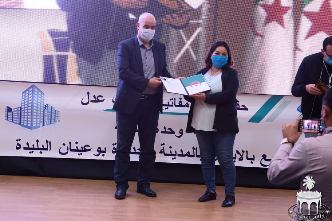 أقيم اليوم حفل لفعاليات أكبر عملية لتوزيع سكنات عدل (AADL) على مستوى المدينة الجديدة بوعينان والمقدرة بـ 4605 وحدة سكنية بصيغة البيع بالإيجار، أين تم التسليم الرمزي للمفاتيح لـ 17 مكتتب بقاعة الـمؤتمرات بالولاية. –