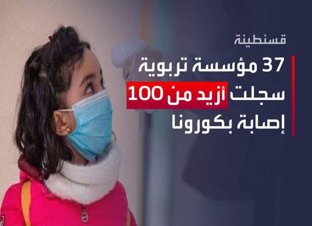 سجلت 37 مؤسة تربوية بولاية قسنطينة، منذ الدخول المدرسي لسنة 2020-2021، إصابة 104 من المنتسبين إليها بفيروس كورونا، حسب ما أفادت به لجنة التربية بالمجلس الشعبي الولائي في قسنطينة خلال لقائها مع مدير التربية للولاية
