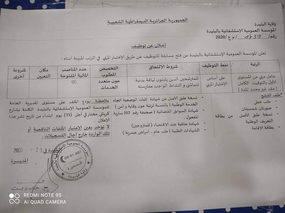 التصنيفات ici c'est Blida إعلان عن توظيف في المؤسسة العمومية الإستشفائية بالبليدة ( للفابور ) بالتوفيق … Post author بواسطة ici c'est Blida Post date 23/11/2020 لا توجد تعليقات على إعلان عن توظيف في المؤسسة العمومية الإستشفائية بالبليدة ( للفابور ) بالتوفيق … إعلان عن توظيف في المؤسسة العمومية الإستشفائية بالبليدة ( للفابور ) بالتوفيق … إعلان عن توظيف في المؤسسة العمومية الإستشفائية بالبليدة ( للفابور ) بالتوفيق @icicestblida2018 Partager : المشاركة على X (فتح في نافذة جديدة) X شارك على فيس بوك (فتح في نافذة جديدة) فيس بوك Email a link to a friend (فتح في نافذة جديدة) البريد الإلكتروني إعجاب تحميل... الوسوم ici c'est Blida بواسطة ici c'est Blida صفحة إخبارية شاملة تتابعون فيها مستجدات الأحداث الجزائرية و العربية و العالمية View Archive → ← منظمة الصحة العالمية: هناك حاجة ماسة إلى 4.3 مليار دولار لخطة مشاركة اللقاحات → لكل شخص ساهر الآن !فرج الله كربك وحزنك ويسر همك ورزقك بكل ما تحلم 🤗قولو آمين ❤ أضف تعليق إلغاء الرد Δ