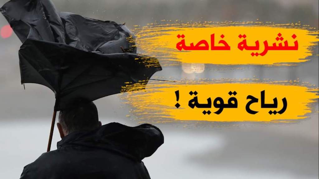 حذرت مصالح الأرصاد الجوية ، اليوم الجمعة، في تنبيه من المستوى الثاني، باللون البرتقالي، من هبوب رياح قوية تتعدى 80كم/سا في 6 ولايات .