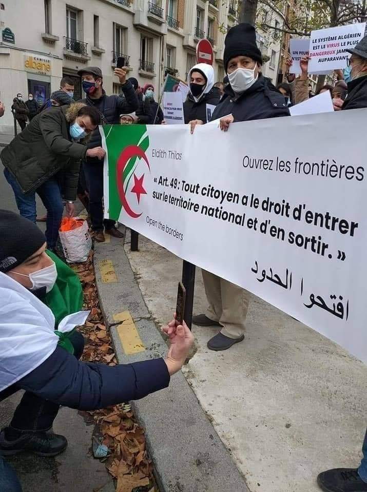 خرج عدد كبير من افراد الجالية الجزائرية في بعض الدول بأمريكا وبريطانيا والسعودية وتركيا وعواصم دول أخرى يوم السبت للاحتجاج أمام السفارات الجزائرية مطالبين باعادة فتح الحدود للدخول الى الجزائر كما عبروا عن رفضهم لشرط ترخيص وزارة الداخلية عبر رحلات الإجلاء..من جهة اخرى نددت تنسيقية مناهضة غلاء التذاكر برفع شعارات كتب عليها “كل مواطن لديه الحق في الدخول والخروج من التراب الوطني، افتحوا الحدود” و قد عبر المحتجون عن التزامهم بالشروط الصحية الوقائية ومنها الاختبار المخبري لفيروس كورونا pcr، وأي شروط أخرى تصب في سياق الجهود المبذولة من طرف الدولة للقضاء على الوباء وفقا لما نشرته الشروق و من بين الشعارات “فتح الحدود للجزائريين” و”رخصتي جواز سفري”