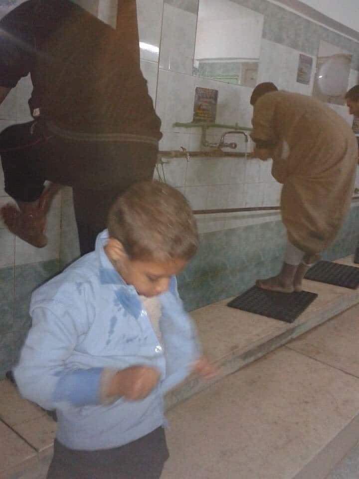 اردت أن أتوضأ قبل صلاة الجمعة، فوجدت طفلا في المكان المخصص للوضوء، ظننته يلعب بالماء فقط؛ لأنه كان صغيرا جدا..