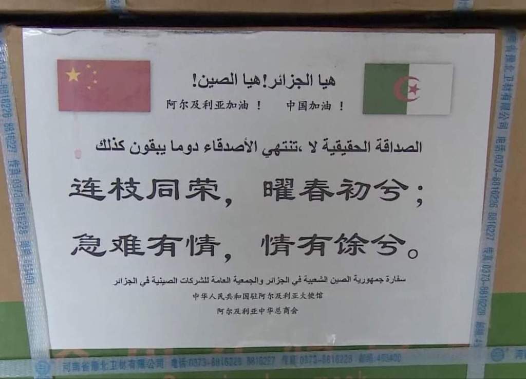 – ستسلم السفارة الصينية بالجزائر الهلال الأحمر الجزائري، دفعة جديدة من مستلزمات طبية الموجهة لمكافحة فيروس كورونا حسب ما ذكرته في بيان منشور على صفحتها الرسمية على الفايسبوك